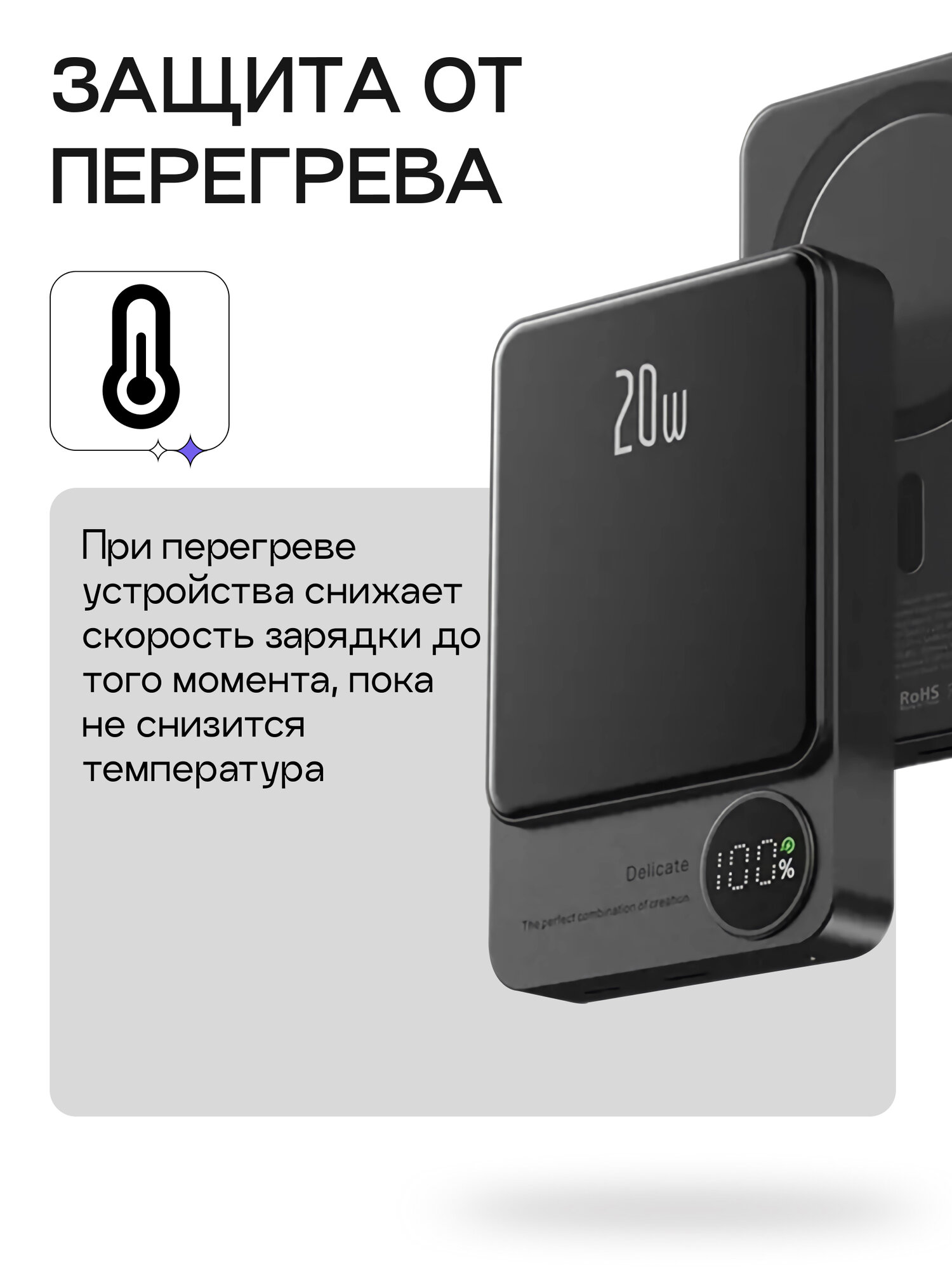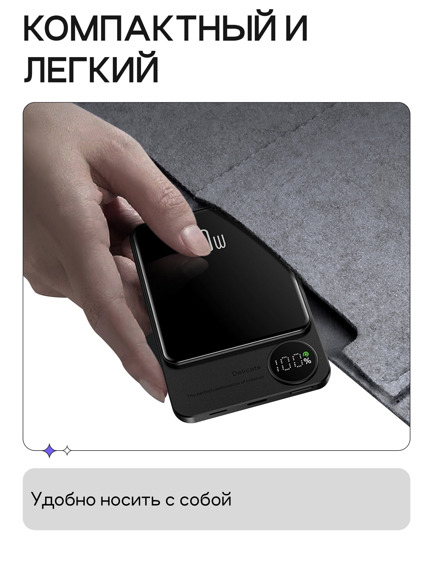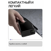 Беспроводная зарядка или повербанк в самолет осуществляется благодаря магнитному соединению, обеспечивая надежную фиксацию телефона во время процесса зарядки. Это удобно как для использования в движении, так и для домашнего использования. Портативка достаточно тонкая и легкая, легко помещается в карман или сумку.