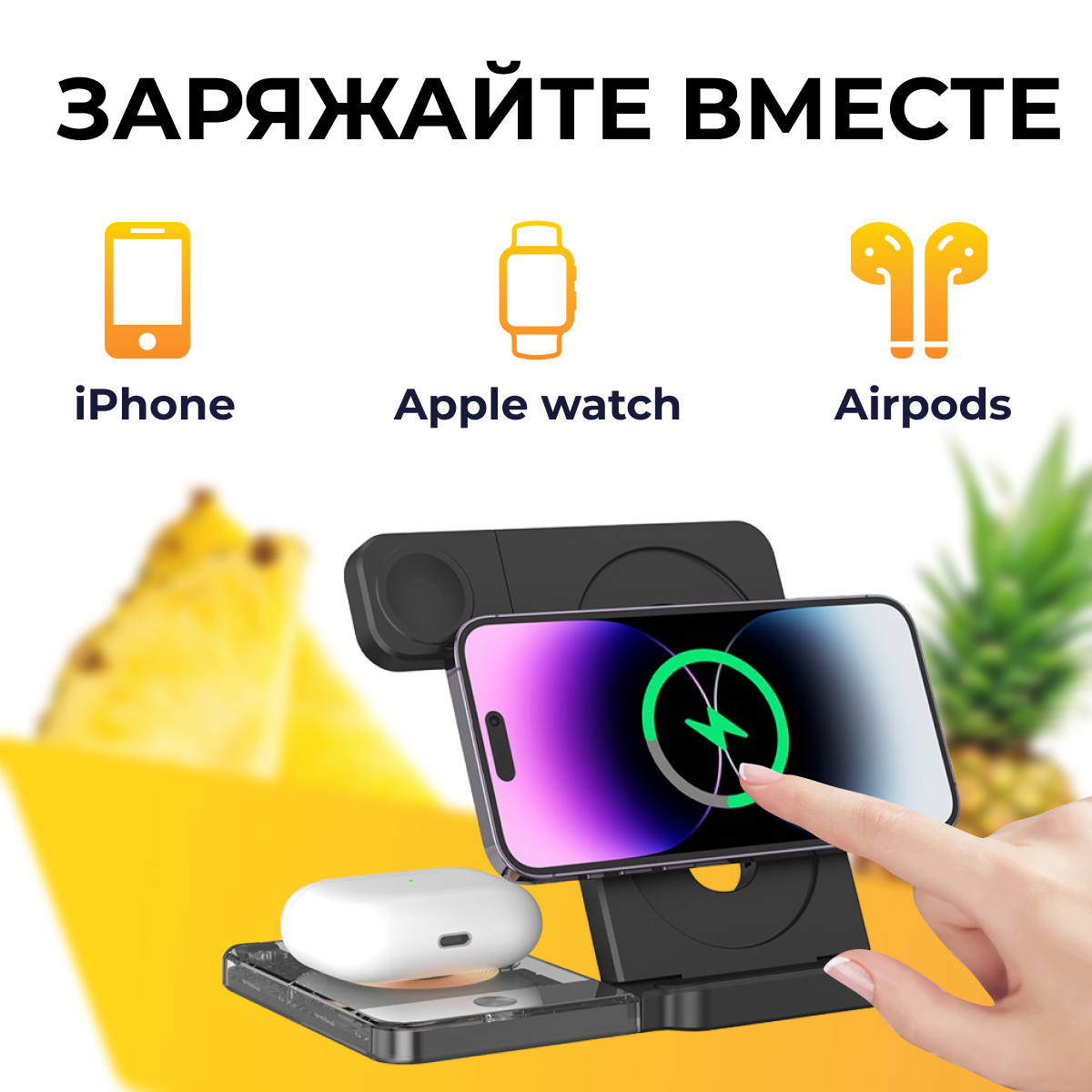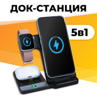 Беспроводная зарядка MagSafe 5 в 1 для iPhone, Apple Watch и AirPods / Док-станция с быстрой зарядкой и подсветкой для телефонов / Черная: сравнение цен, характеристики, фото, актуальное наличие и цены.
