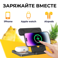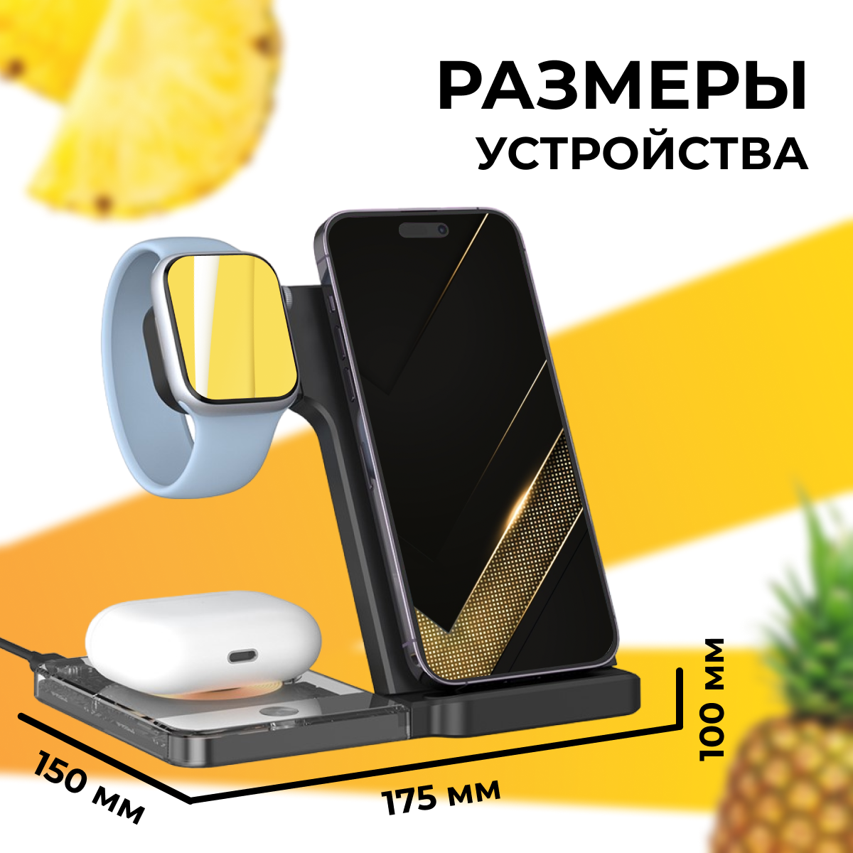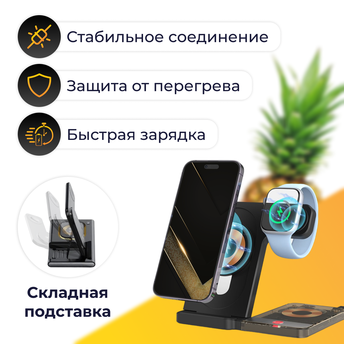 Купить Беспроводная зарядка MagSafe 5 в 1 для iPhone, Apple Watch и AirPods / Док-станция с быстрой зарядкой и подсветкой для телефонов / Черная с доставкой по всей России.