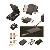 Многофункциональный дорожный набор для мобильных устройств - это отличный помощник в любой поездке и в повседневной жизни. Размеры соизмеримы с банковской карточкой и позволяют спокойно носить его с собой в кармане. У него есть два слота под SIM-карты и скрепка для извлечения сим.