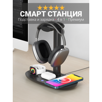 Беспроводная зарядная станция 4 в 1 представляет собой многофункциональное устройство, которое обеспечивает быструю и безопасную зарядку различных гаджетов.
