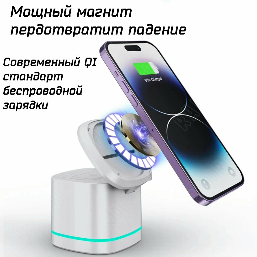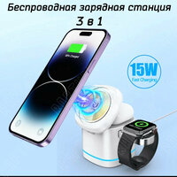 | Дополнительная информация | При зарядке телефона, наушников, часов вместе - подключать зарядную станцию следует к блоку питания с функцией быстрой зарядки QC3.0 выдающему 3А!. Не идет в комплекте, приобретается отдельно!!! |