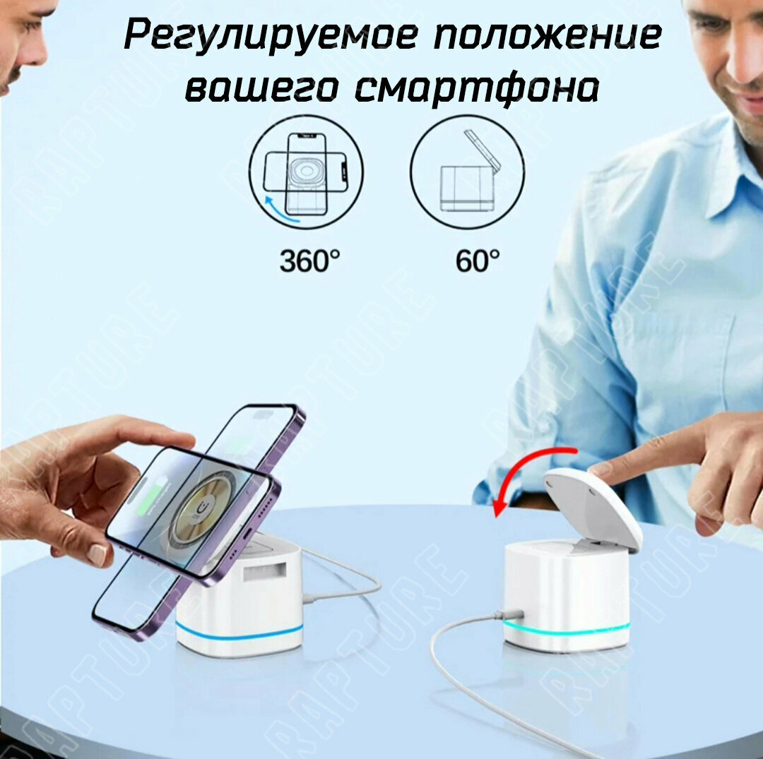 | Конструкция беспроводного устройства | для 1 телефона, зона для Apple Watch, зона для беспроводных наушников |