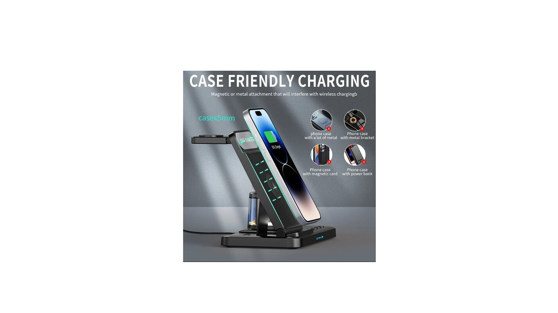 для 1 телефона, зона для беспроводных наушников, зона для умных часов