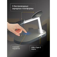 Док станция совместима со всеми устройства, поддерживающими функцию беспроводной зарядки.
