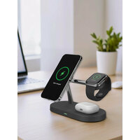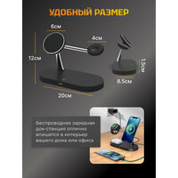 Беспроводная док-станция 5 в 1 МагСейф 15W - это удобное и функциональное устройство, которое позволяет заряжать ваш iPhone, Apple Watch, AirPods и другие устройства одновременно.