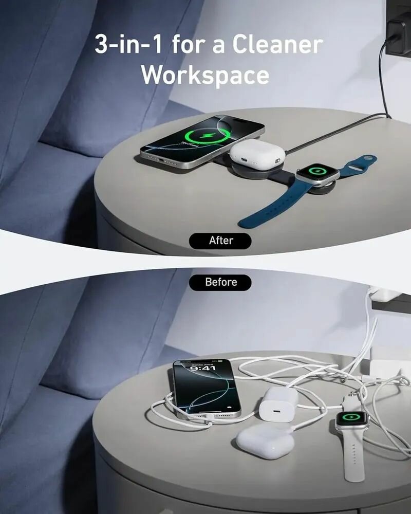 | Конструкция беспроводного устройства | для 2 телефонов, зона для Apple Watch |