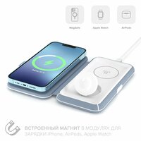 Lyambda LMS301 позволяет одновременно заряжать два устройства Apple – iPhone, AirPods и Watch. Электронный контроллер автоматически выбирает оптимальные параметры для каждого девайса. Это означает, что можно заряжать свои гаджеты одновременно, экономя время и упрощая процесс зарядки.