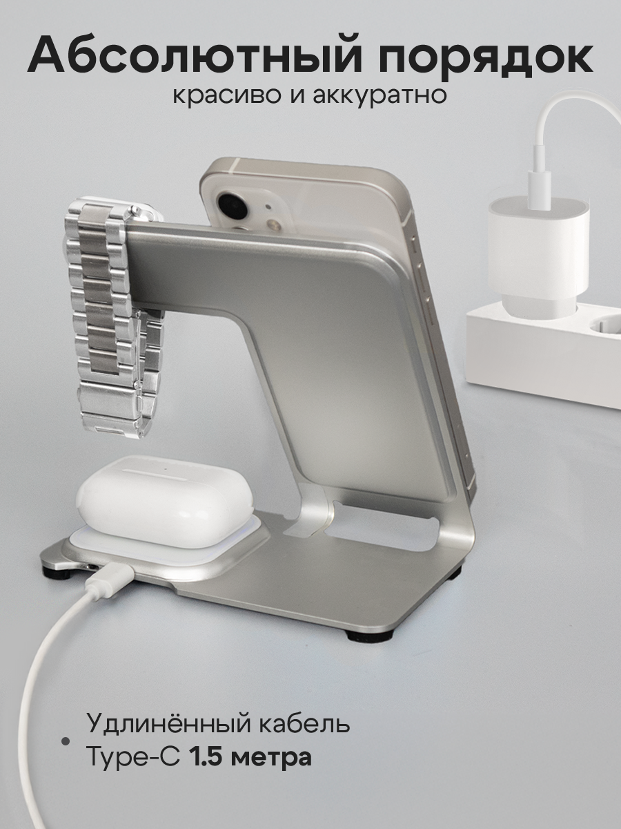 | Конструкция беспроводного устройства | для 1 телефона, зона для Apple Watch, зона для беспроводных наушников |