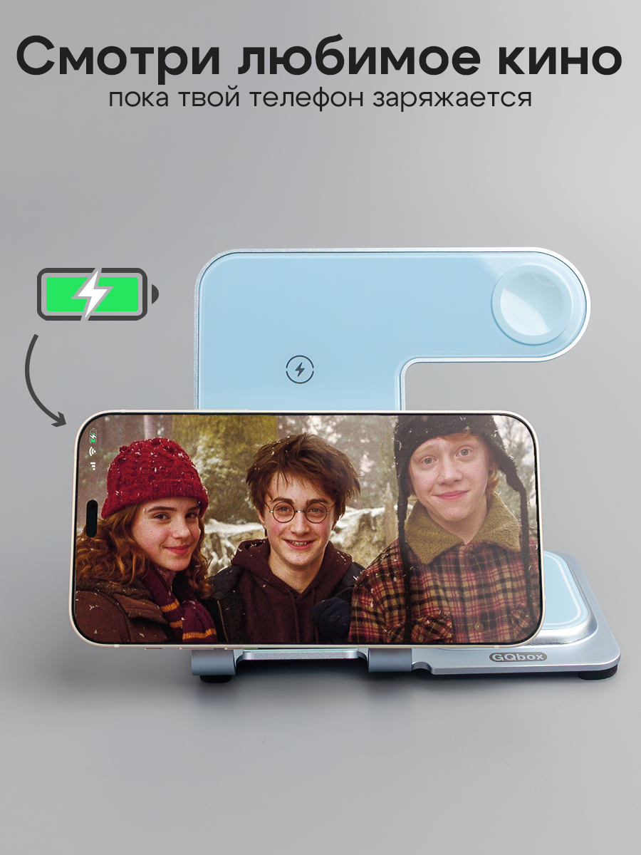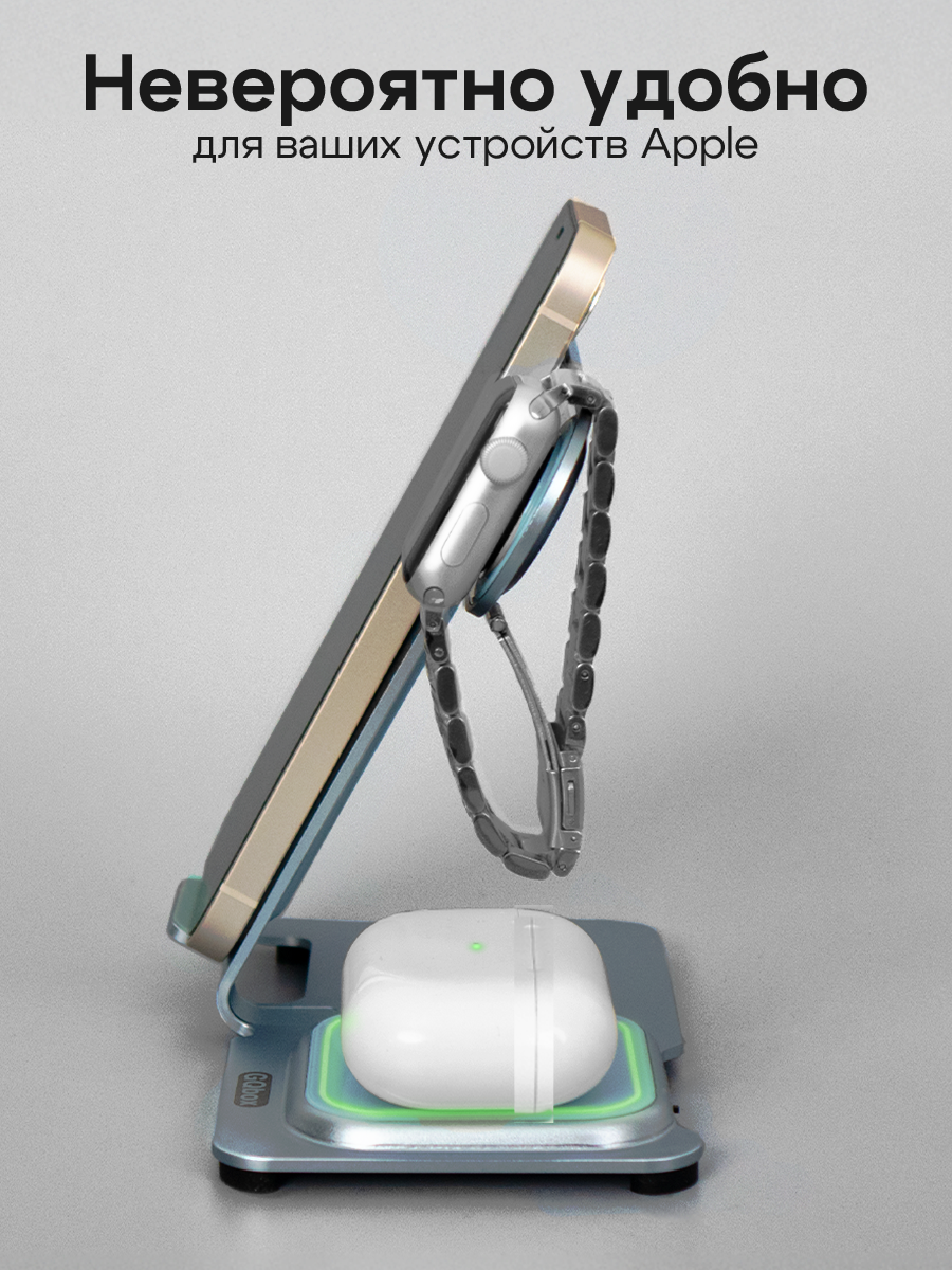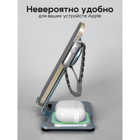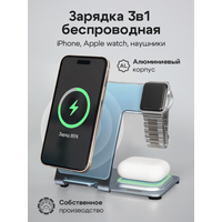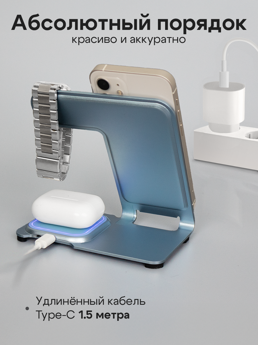 Купить Беспроводное зарядное устройство / Зapядка / Док станция 3в1 для iPhone / Быстрая зарядка / Голубой с доставкой по всей России.