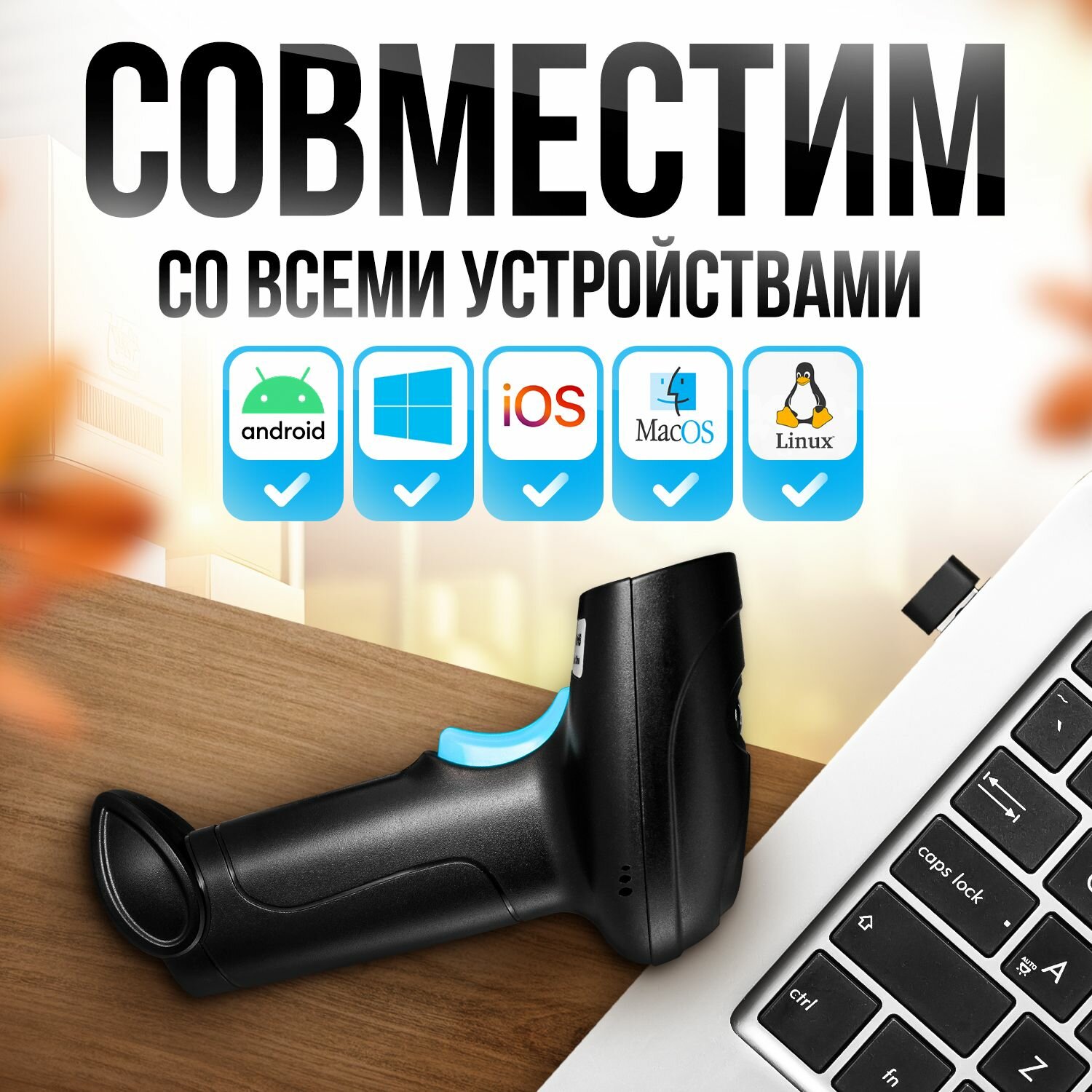 Наш сканер штрих кода 2d беспроводной легко подключается к вашему устройству через Bluetooth USB. Он быстро и точно сканирует штрих коды и QR-коды, отлично работает с системой Честный знак, ЕГАИС, ПВЗ, Маркировка, что делает процесс работы в магазине более эффективным и продуктивным. Совместим с онлайн кассами и смарт терминалами: Эватор, Сигма, Атол, Меркурий, Кассатка, Модуль касса и др. Беспроводной сканер работает на Windows, Linux, Android, Mac. Сканер работает с програмами: 1С, Iiko, R-Keeper, Мой склад, Далион, Фронтол, Штрих-М.