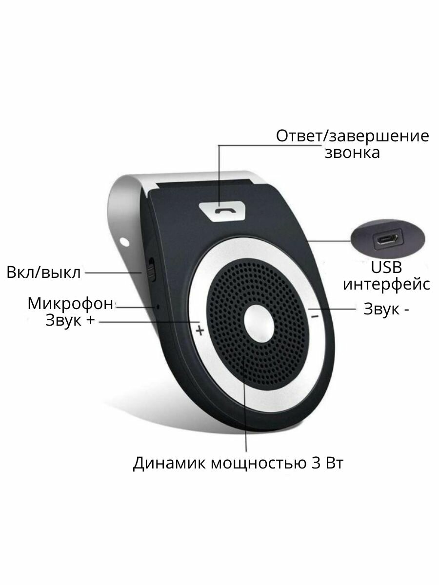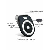 Этот портативное мини-устройство, специально разработанное для удобной беспроводной связи и воспроизведения музыки в вашем авто. Устройство – hands-free. Будьте сосредоточены на дороге, держа руки на руле, используя лишь свой голос, чтобы управлять им. Благодаря высокочувствительному микрофону для передачи голоса в HD-качестве и технологии шумоподавления DSP, этот спикерфон создает для вас отличное качество звука. Оно оснащено встроенным перезаряжаемым аккумулятором, который вы можете зарядить в любое время с помощью прилагаемого зарядного устройства. Данный спикерфон прост в настройках и в эксплуатации, можно просто закрепить его на солнцезащитный козырек автомобиля или в любом другом удобном месте и наслаждайтесь звонками в режиме hands-free, подключайте два телефона одновременно, используйте в качестве устройства для телеконференций, включая вызовы в режиме громкой связи. Характеристики: Стандарт Bluetooth: 4,1 + EDR Беспроводной диапазон: 10 м Выходной ток зарядного устройства: 5 В, 1,5 А. Встроенный аккумулятор: 3,7 В, 600 мА. Заряд в рабочем режиме: 17-20 часов заряд в режиме покоя: до 1400 часов/60 дней
