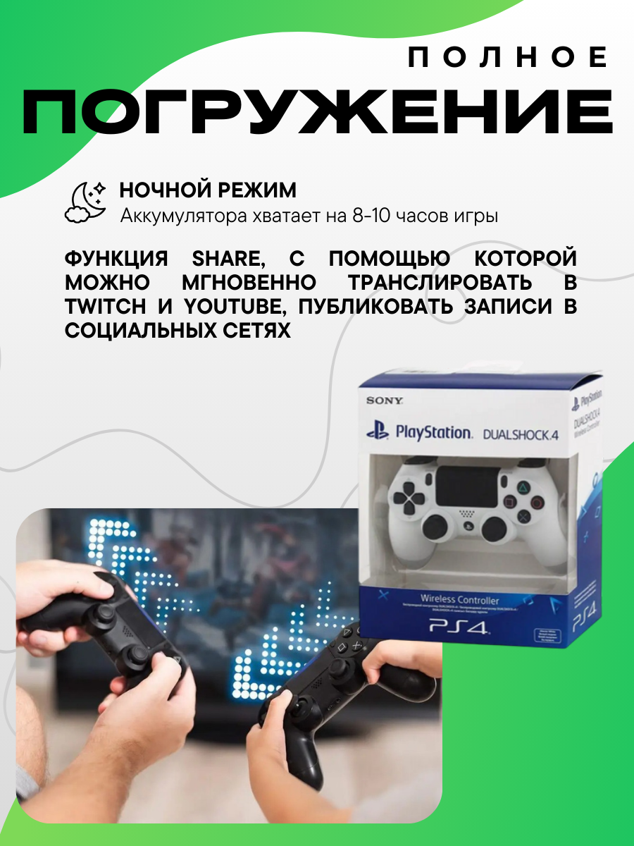 Беспроводное подключение: геймпад оснащен Bluetooth 2.1, что позволяет легко подключаться к PS4, ПК и другим устройствам без необходимости использования проводов. Радиус действия составляет 10 метров, что обеспечивает свободу движений во время игры.