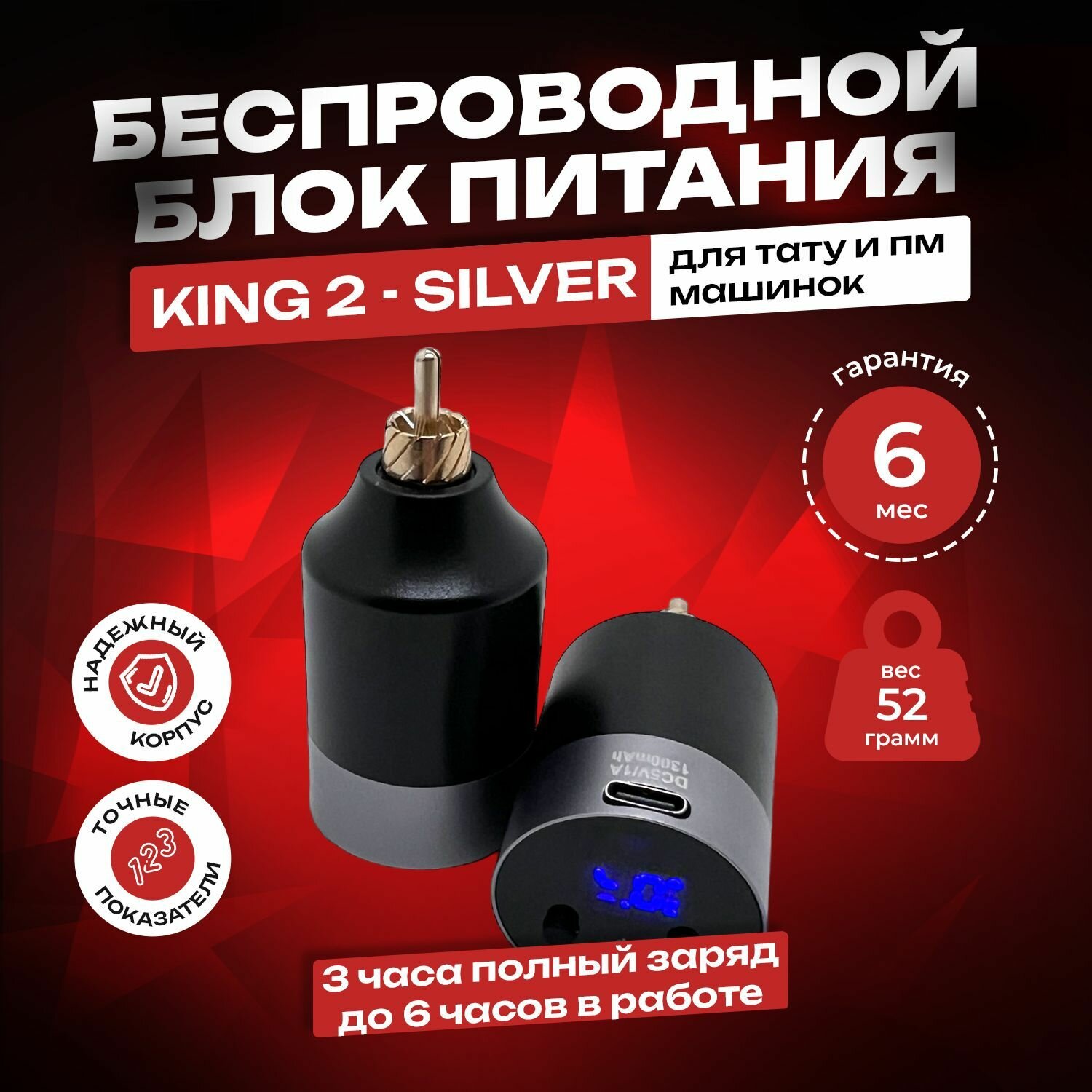 Беспроводной блок питания для тату и пм машинки KING 2 RCA: сравнение цен, характеристики, фото, актуальное наличие и цены.