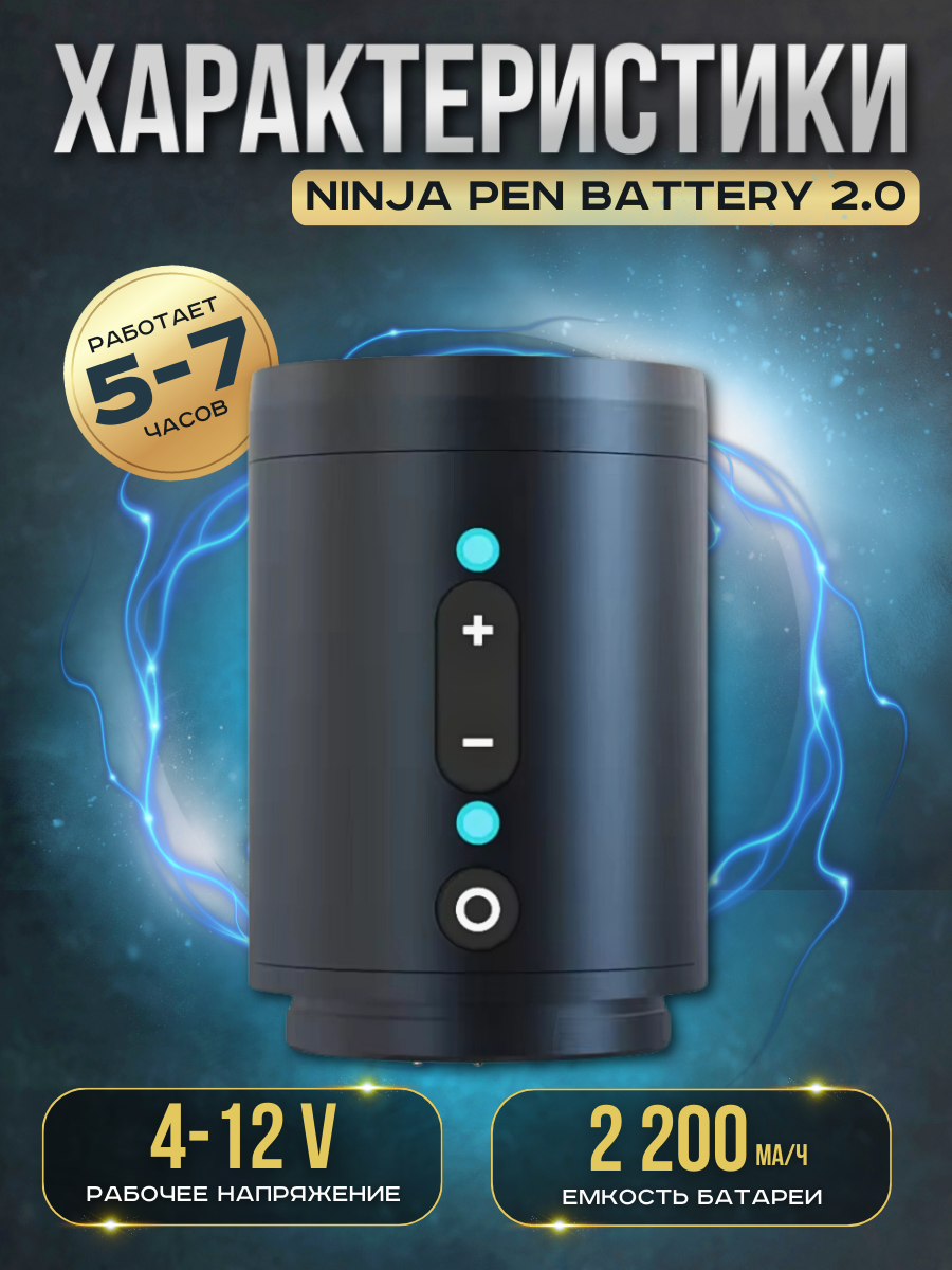 Дополнительный аккумулятор Ninja Pen Battery Small позволит мастеру работать на любимом аппарате даже при длительных сеансах татуировки или перманентного макияжа.