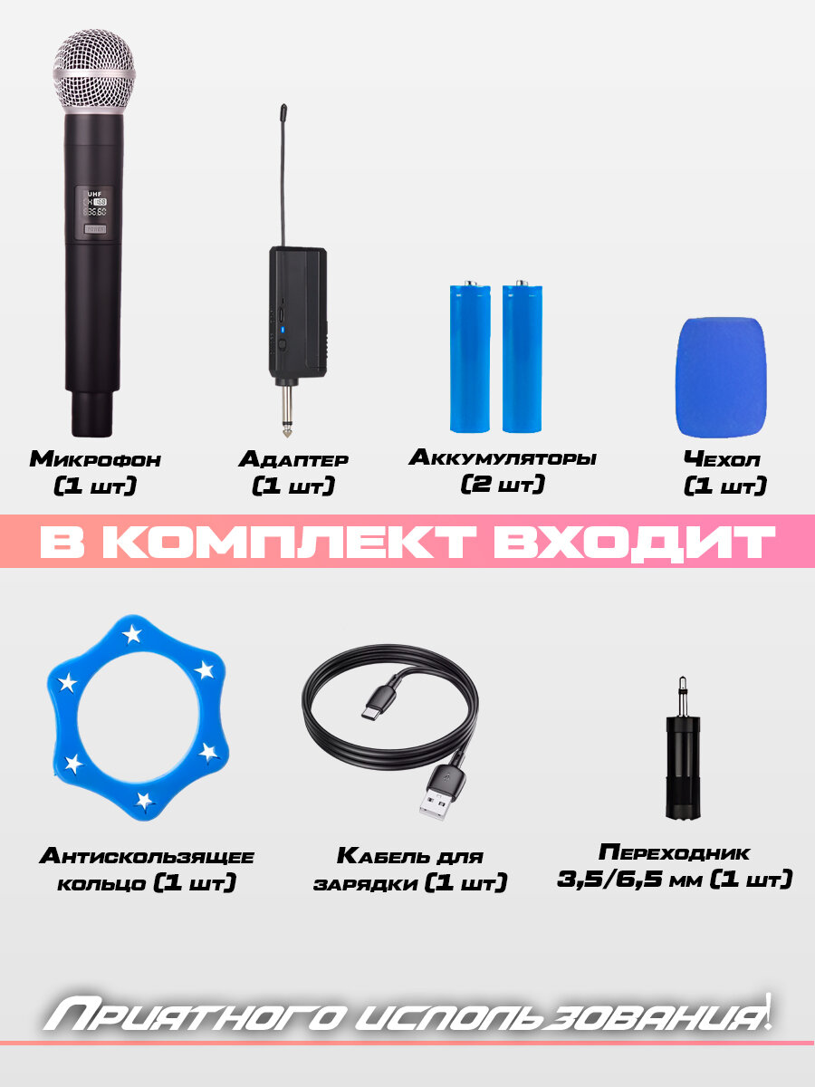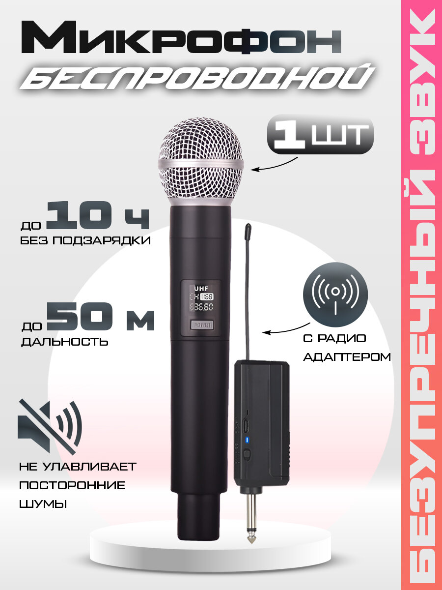 Беспроводной динамический микрофон для живого вокала, караоке и выступлений с радио адаптером, 1 штука: сравнение цен, характеристики, фото, актуальное наличие и цены.