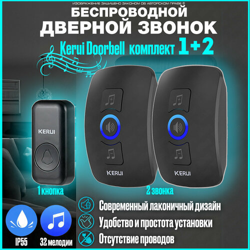 Беспроводной дверной звонок, комплект электронного звонка с двумя приемниками, кнопка вызова Kerui Doorbell Twin Black: сравнение цен, характеристики, фото, актуальное наличие и цены.