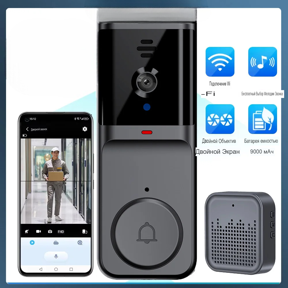 Беспроводной дверной звонок M16, с видеокамерой и микрофоном, влагозащищённый, черный: сравнение цен, характеристики, фото, актуальное наличие и цены.