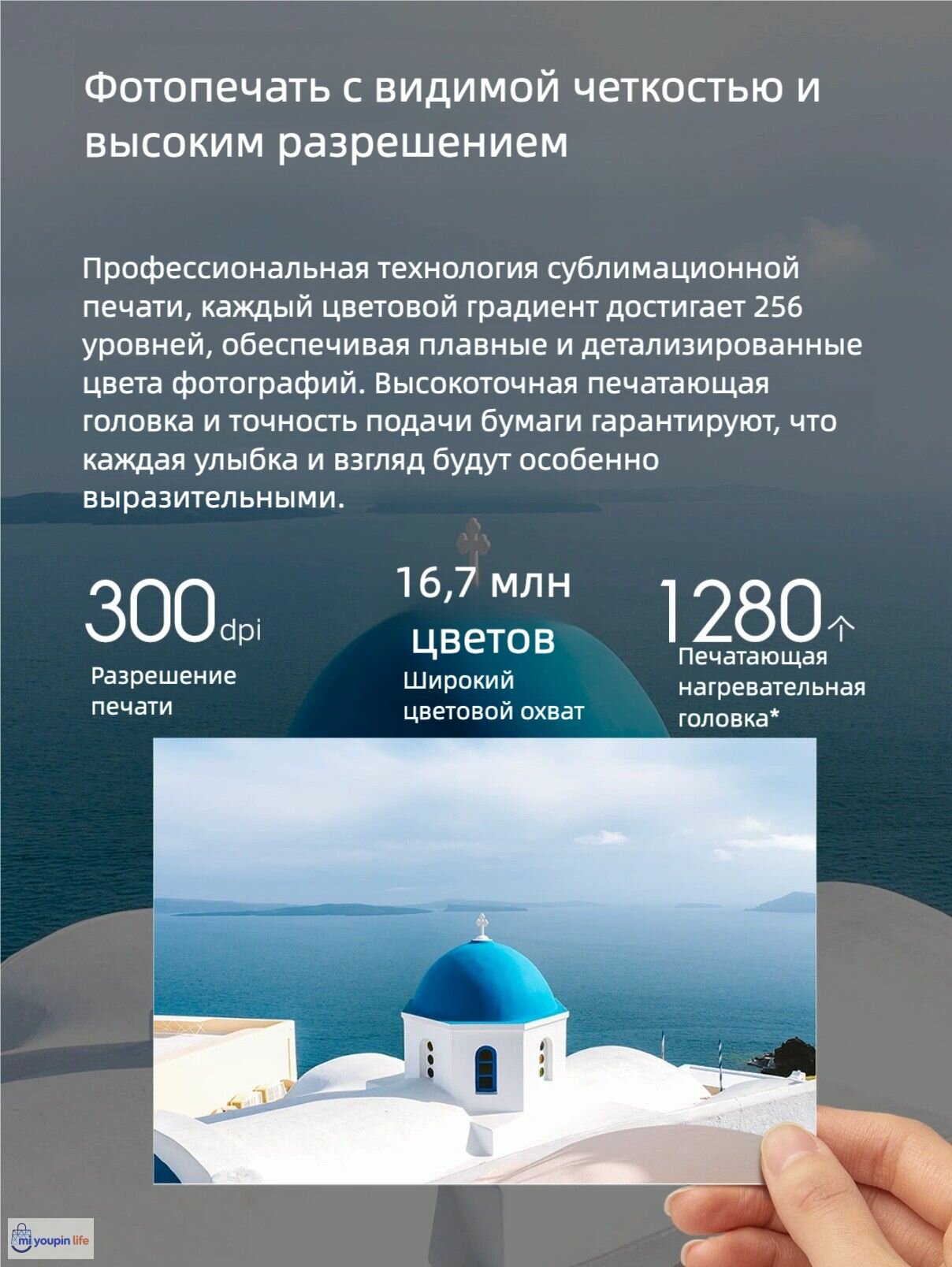 Фотопринтер Xiaomi Mijia 1S 6 дюймов/3 дюйма машина для смартфонов Iphone ленточный принтер Удаленная Печать Поддержка приложения Mi Home Особенности: -Ультра высокое разрешение -Автоматическое ламинирование -Беспроводное соединение -Легкий и портативный Спецификация: Технология печати: сублимационная печать Разрешение печати: 300X300 точек/дюйм Количество уровней печати: 256 уровней на цвет Скорость печати: около 1 минуты/страница Емкость лотка: 20 листов фотобумаги Поддерживаемые форматы файлов: JPEG, PNG Вход параметры: 24V- 1.6A Система поддержки: Android 4,1 или IOS 9,0 и выше Умное приложение: доступ к приложению Mijia Поддерживаемые устройства: смартфоны, смарт-планшеты, персональные компьютеры Беспроводной подключение: Wi-Fi IEEE 802.11b/g/n 2,4 ГГц Размер изделия: 194x124,6x83,6 мм Рабочая температура: 10 °C ~ 35 °C Фотопринтер Xiaomi Mijia 1s Два размера фотографий, эксперт в печати высокой четкости HD качество изображения | Автоматическая пленка для пальцев | 6 дюймов и 3 дюйма * Фотобумага | Мгновенная печать на мобильный телефон Высокое качество изображения Поддержка нескольких быстрых беспроводных устройств Фотобумага двух размеров Функция прямого обновления подключения Фото для паспорта разных размеров Инновационная Магнитная бумажная коробка