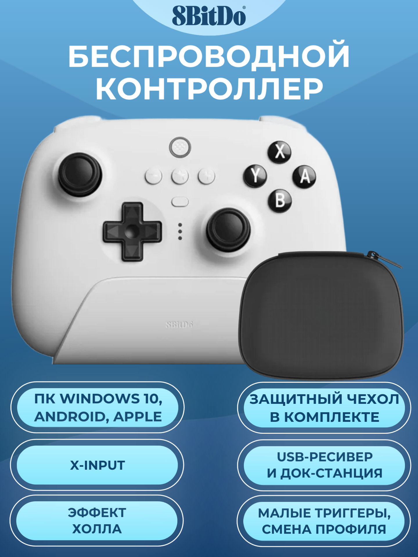Купить Беспроводной геймпад 8BitDo Ultimate 2.4G Wireless Controller для ПК, Android, Apple, белый, в чехле с доставкой по всей России. Беспроводной геймпад 8BitDo Ultimate 2.4G Wireless Controller для ПК, Android, Apple, белый, в чехле: сравнение цен, характеристики, фото, актуальное наличие и цены.