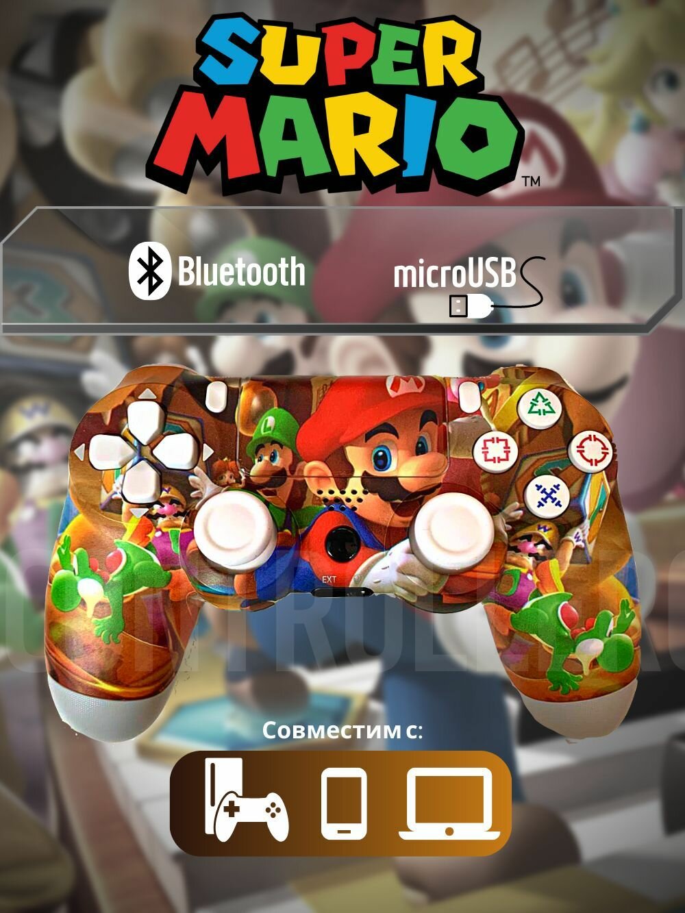 Купить Беспроводной геймпад для игровой приставки ПС4, смартфона и ПК, Марио с доставкой по всей России. Беспроводной геймпад для игровой приставки ПС4, смартфона и ПК, Марио: сравнение цен, характеристики, фото, актуальное наличие и цены.