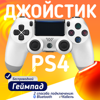 Купить Беспроводной геймпад для PS4, ПК и смартфонов — универсальный джойстик с Bluetooth, гироскопом и виброотдачей, белый с доставкой по всей России.