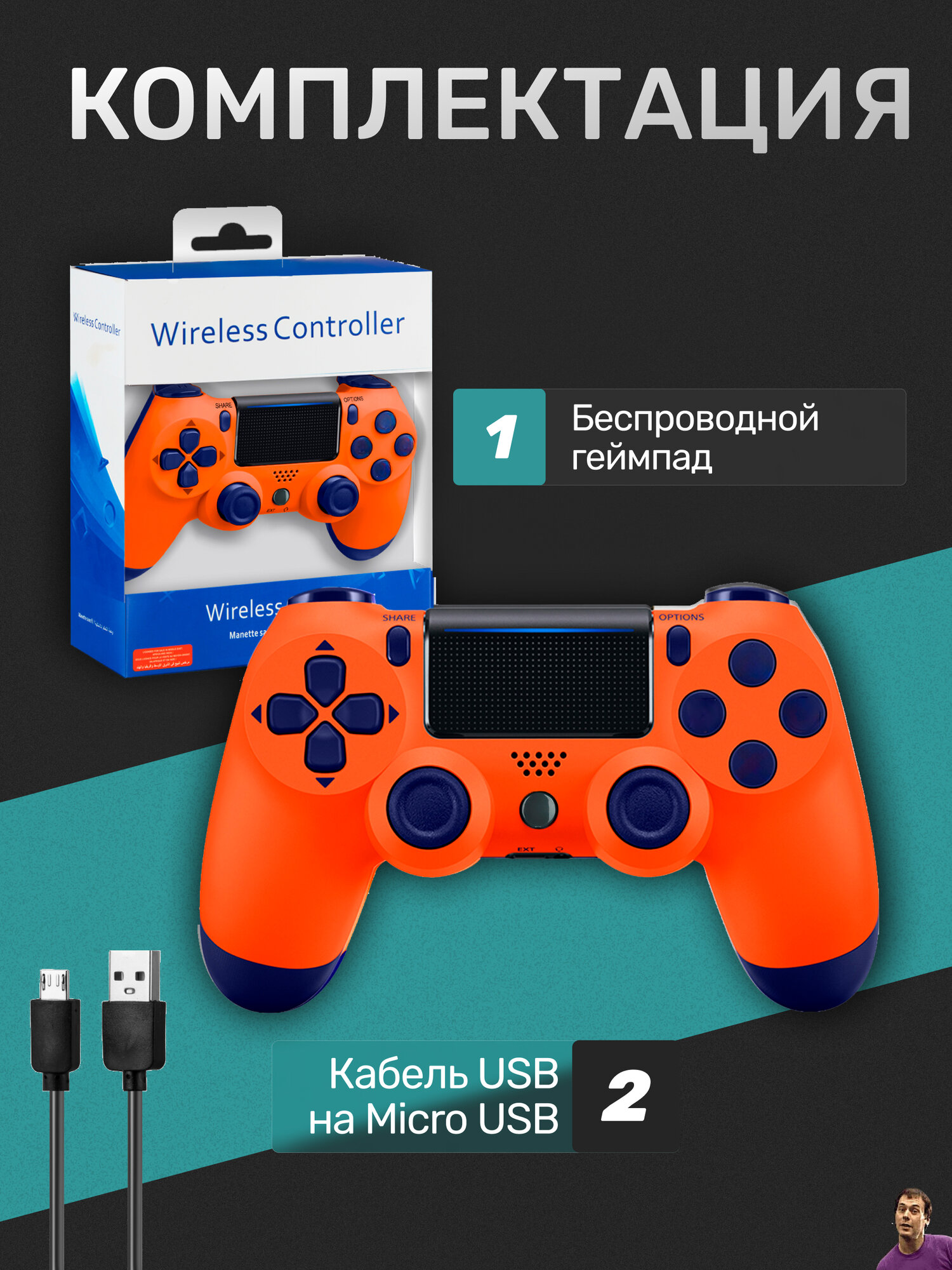 Купить Беспроводной геймпад для PS4/ПК/телефона с Bluetooth, оранжевый с доставкой по всей России. Беспроводной геймпад для PS4/ПК/телефона с Bluetooth, оранжевый: сравнение цен, характеристики, фото, актуальное наличие и цены.