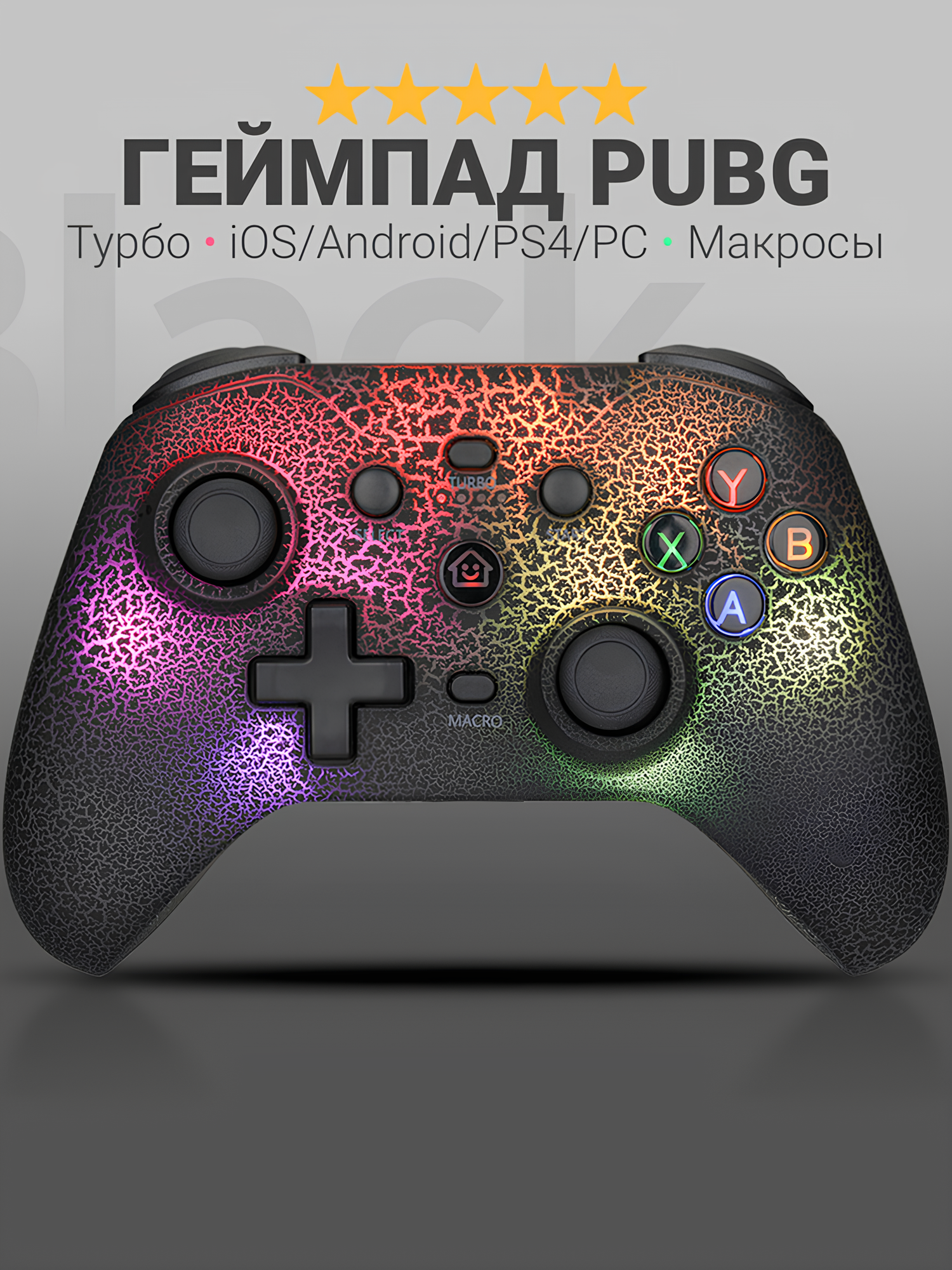 Беспроводной геймпад для PS4/PS3/Android/iOS/Nintendo Switch/PC, RGB подсветка, макросы, кнопка турбо-режим, черный: сравнение цен, характеристики, фото, актуальное наличие и цены.