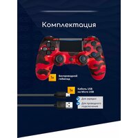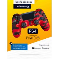 Беспроводной джойстик Original Drop для PS4 камуфляжного цвета красный хаки с полным набором функций DualShock 4 (v2) и подключением через Bluetooth.
