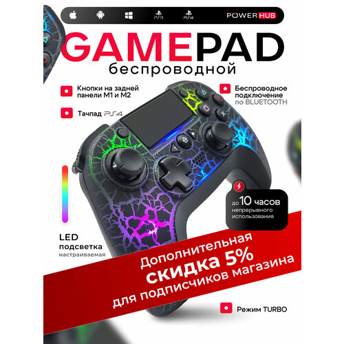 Купить Беспроводной геймпад, джойстик для телефона/ПК/PS4 чёрный с RGB-подсветкой и тачпадом POWERHUB с доставкой по всей России. Беспроводной геймпад, джойстик для телефона/ПК/PS4 чёрный с RGB-подсветкой и тачпадом POWERHUB: сравнение цен, характеристики, фото, актуальное наличие и цены.