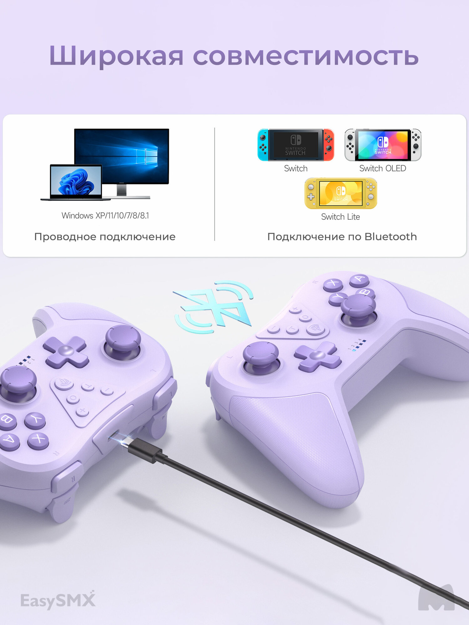 Беспроводной джойстик EasySMX T37 / для Nintendo Switch, Switch Lite, Switch Oled / Bluetooth, цвет фиолетовый (VG-M018): сравнение цен, характеристики, фото, актуальное наличие и цены.