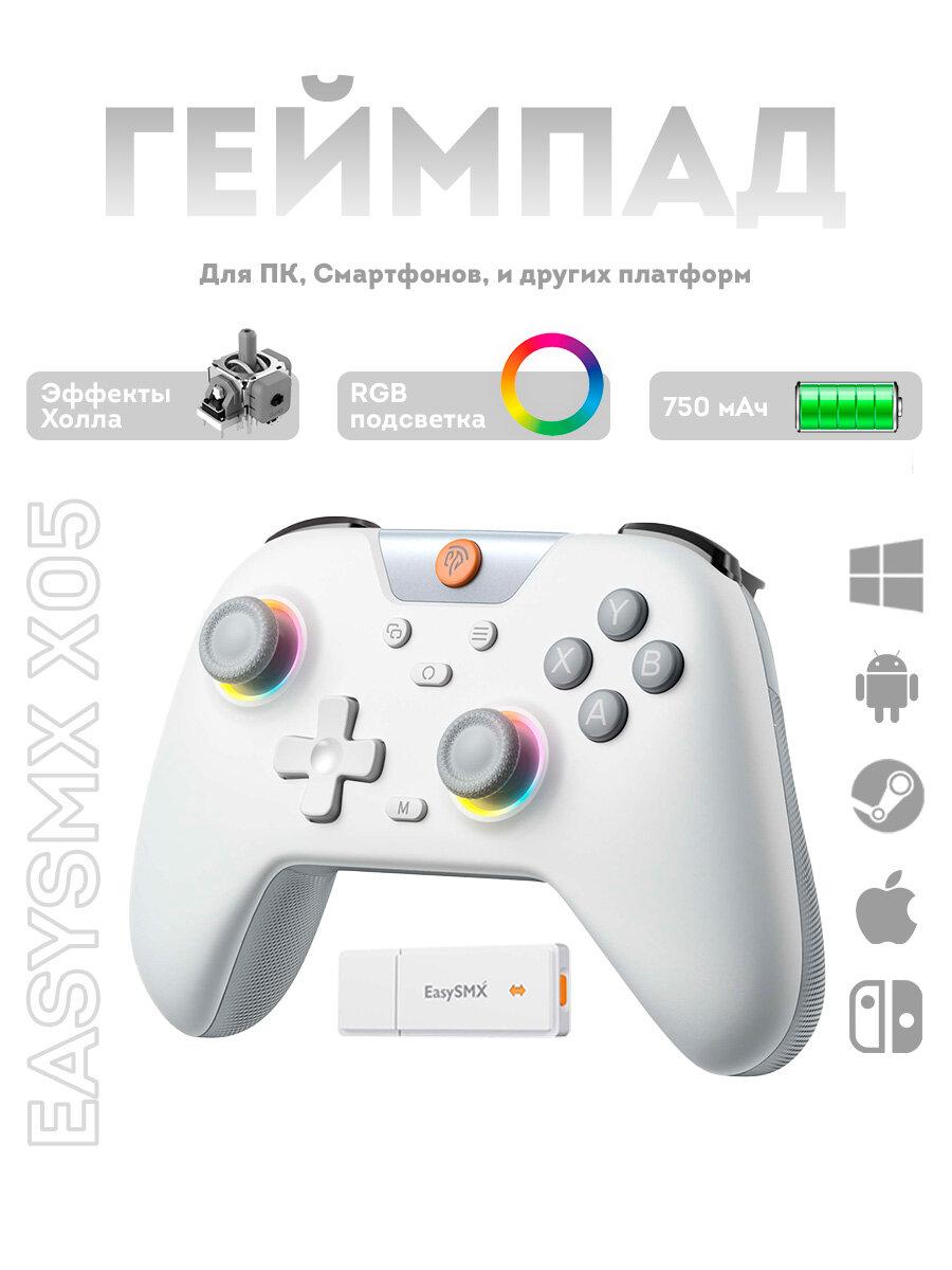 Беспроводной геймпад EasySMX X05 с RGB подсветкой, для ПК, Steam Deck, iOS, Android, датчики Холла, цвет серый (VG-C507): сравнение цен, характеристики, фото, актуальное наличие и цены.
