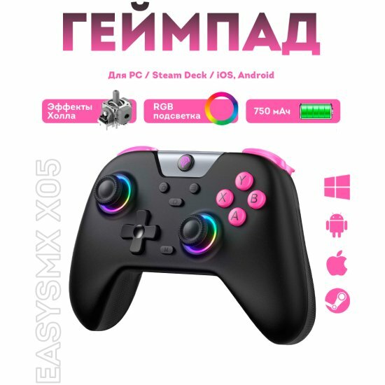Геймпад Easysmx беспроводной X05 с RGB подсветкой / для ПК, Steam Deck, iOS + Android / черный (VG-C511): сравнение цен, характеристики, фото, актуальное наличие и цены.