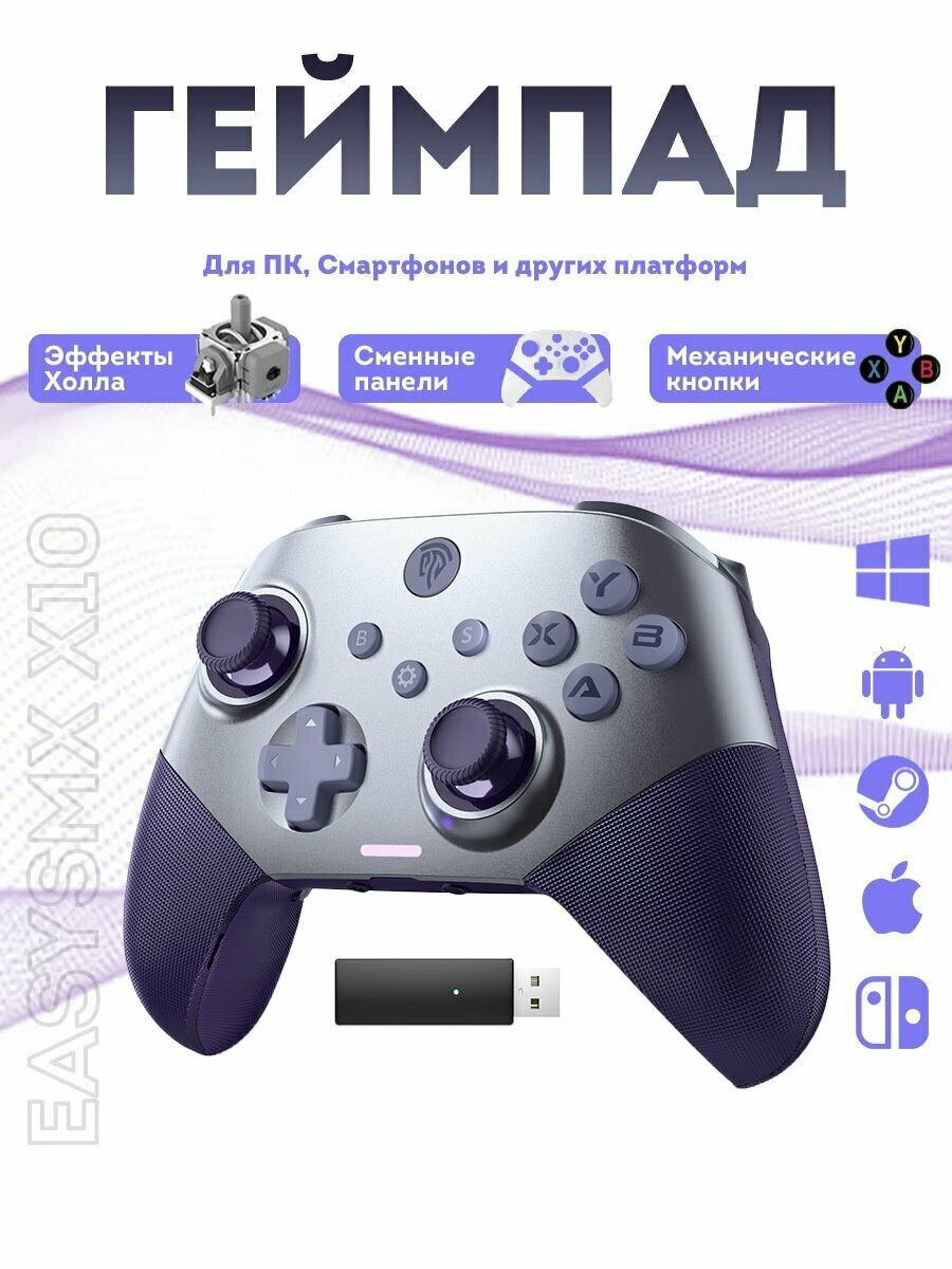 Беспроводной геймпад EasySMX X10 механические кнопки, ПК, Steam Deck, iOS, Android, датчики Холла, фиолетовый (VG-C503): сравнение цен, характеристики, фото, актуальное наличие и цены.