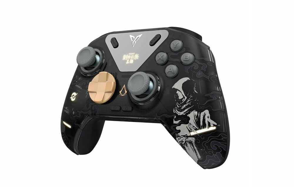 Беспроводной геймпад Flydigi APEX 4 Assassine Creed - многофункциональный игровой контроллер, который сочетает в себе различные типы игровых элементов, такие как джойстики, триггеры и рычаг тяги.