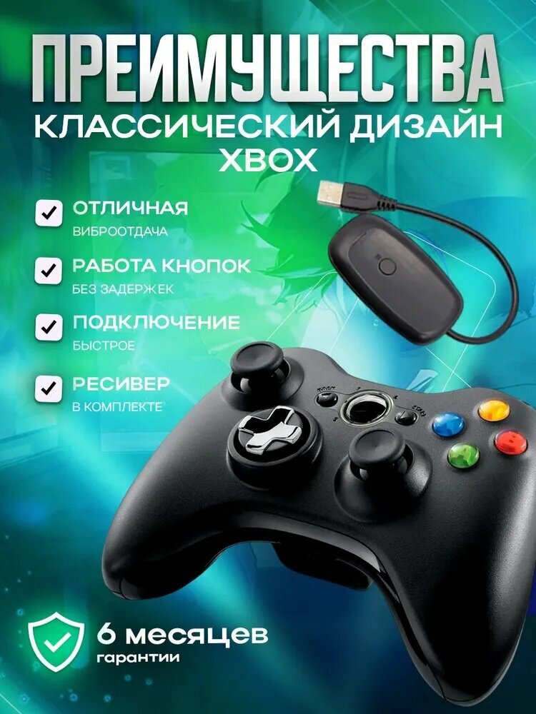 Купить Беспроводной геймпад Xbox с вибрацией, джостик для USB входа, gamepad для ПК (компьютера) с Windows XP 7 10 11 и приставки Xbox 360, игровой джойстик, черный с доставкой по всей России. Беспроводной геймпад Xbox с вибрацией, джостик для USB входа, gamepad для ПК (компьютера) с Windows XP 7 10 11 и приставки Xbox 360, игровой джойстик, черный: сравнение цен, характеристики, фото, актуальное наличие и цены.