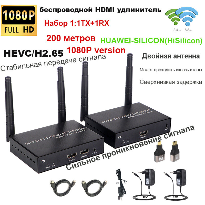 Беспроводной HDMI передатчик и приёмник 1080P | Передача до 200 м, поддержка ИК-пульта и RJ45: сравнение цен, характеристики, фото, актуальное наличие и цены.