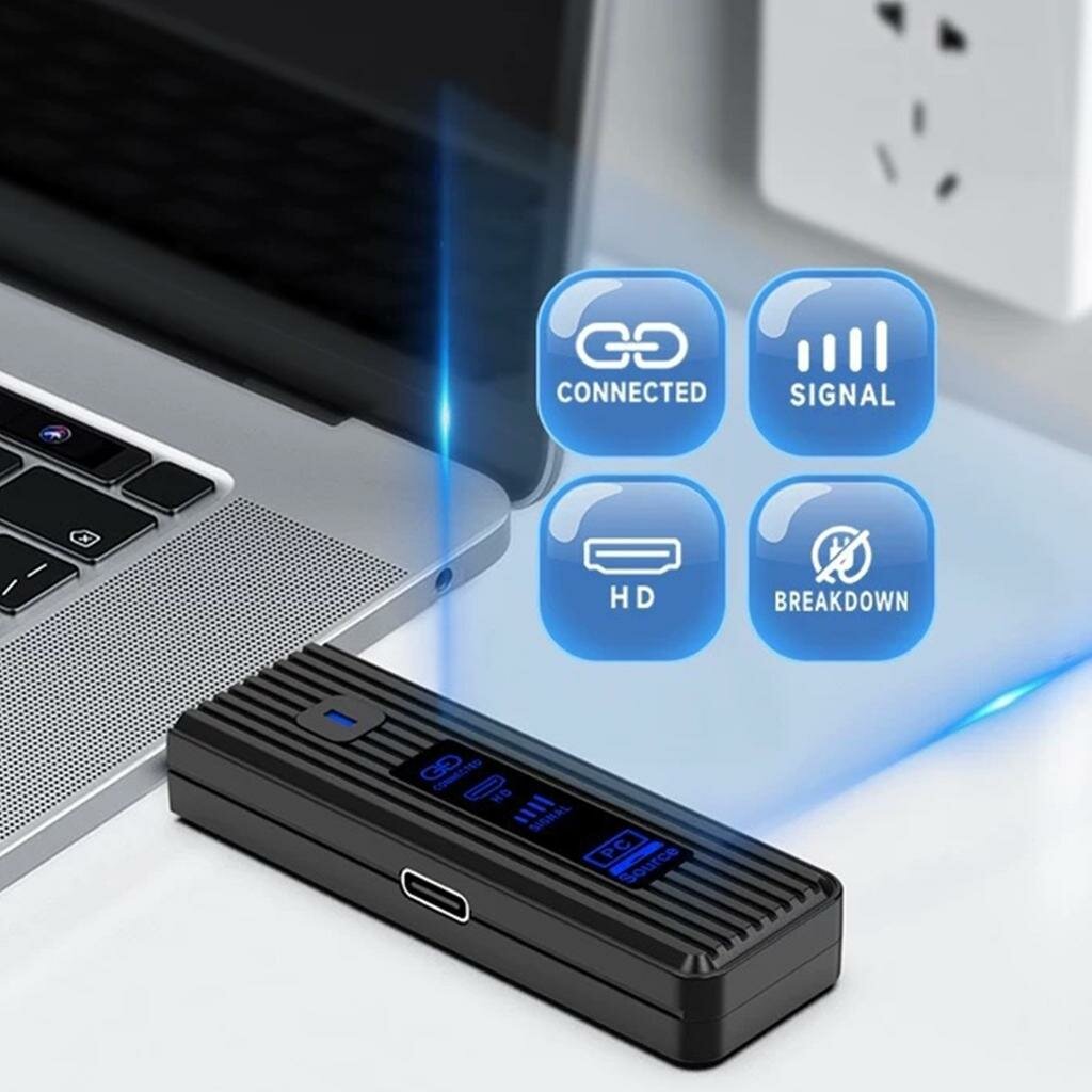 Особенности: Благодаря этому адаптеру дисплея hdmis с поддержкой декодирования в формате 4K, обеспечивающему четкую визуализацию на совместимых устройствах, вы сможете осуществлять беспроводную потоковую передачу с разрешением 1080P на расстоянии до 50 метров. конструкция plugs and play обеспечивает мгновенное подключение к устройствам, оснащенным hdmis, без установки программного обеспечения, благодаря компактному корпусу из ABS для удобства переноски. Идеально подходит для любителей домашнего кинотеатра, деловых людей и геймеров, которым требуется надежное беспроводное зеркальное отображение экрана на смартфонах, планшетах и ноутбуках. Идеально подходит для иммерсивного просмотра фильмов, презентаций в конференц-залах или игр, требующих передачи видео без задержек в жилых помещениях и профессиональных условиях. Универсальная совместимость обеспечивает стабильное соединение между современными интеллектуальными устройствами и дисплеями, сохраняя целостность сигнала через стену в расширенных рабочих диапазонах. Технические характеристики: Компонент: ABS Размер: приблизительно 84x24 мм / 3,3x0,95 дюйма 2 варианта цвета; Название продукта: беспроводные проекторы hdmis с разрешением экрана 1080P 50 м видеопередатчик Примечание: Пожалуйста, допускайте погрешность в 1-2 см из-за ручного измерения. Из-за различий между различными мониторами изображение может не отражать фактический цвет изделия. Пакет включает в себя: 1 шт передатчик 1 шт приемник