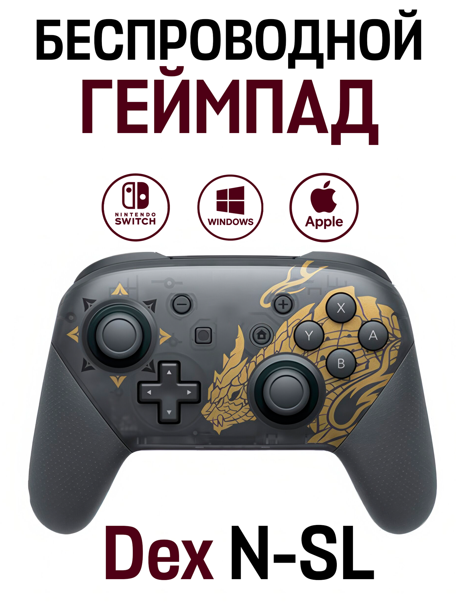 Купить Беспроводной игровой контроллер Dex, геймпад N-SL для Nintendo Switch Pro, чёрный, золотой с доставкой по всей России.