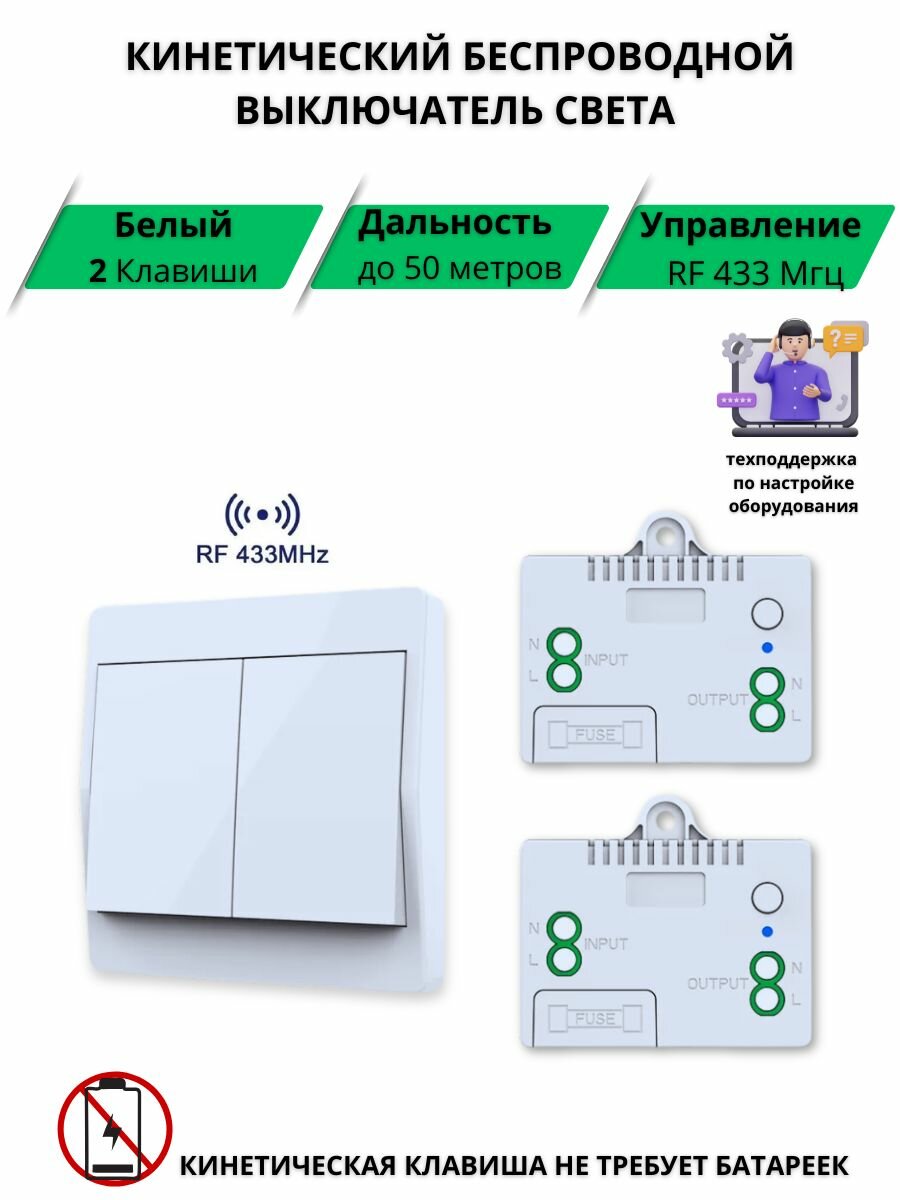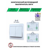 Использует уникальную технологию сбора энергии. Когда Вы нажимаете кнопку, модуль преобразования энергии внутри преобразует кинетическую энергию в электрическую. Затем беспроводной модуль кнопки отправляет сигнал на приемник. Приемник получает сигналы и включает / выключает свет.