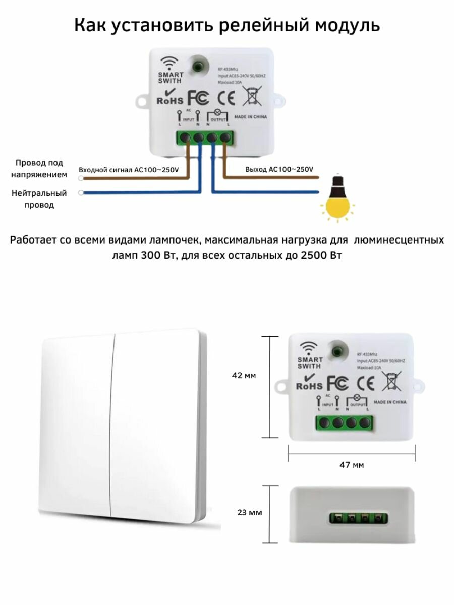 Беспроводной выключатель света, не требует проводов. Когда Вы нажимаете кнопку приемник получает сигналы и включает / выключает свет. Из преимуществ беспроводного выключателя отметим: