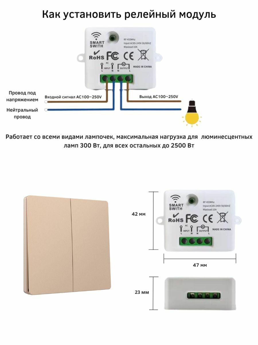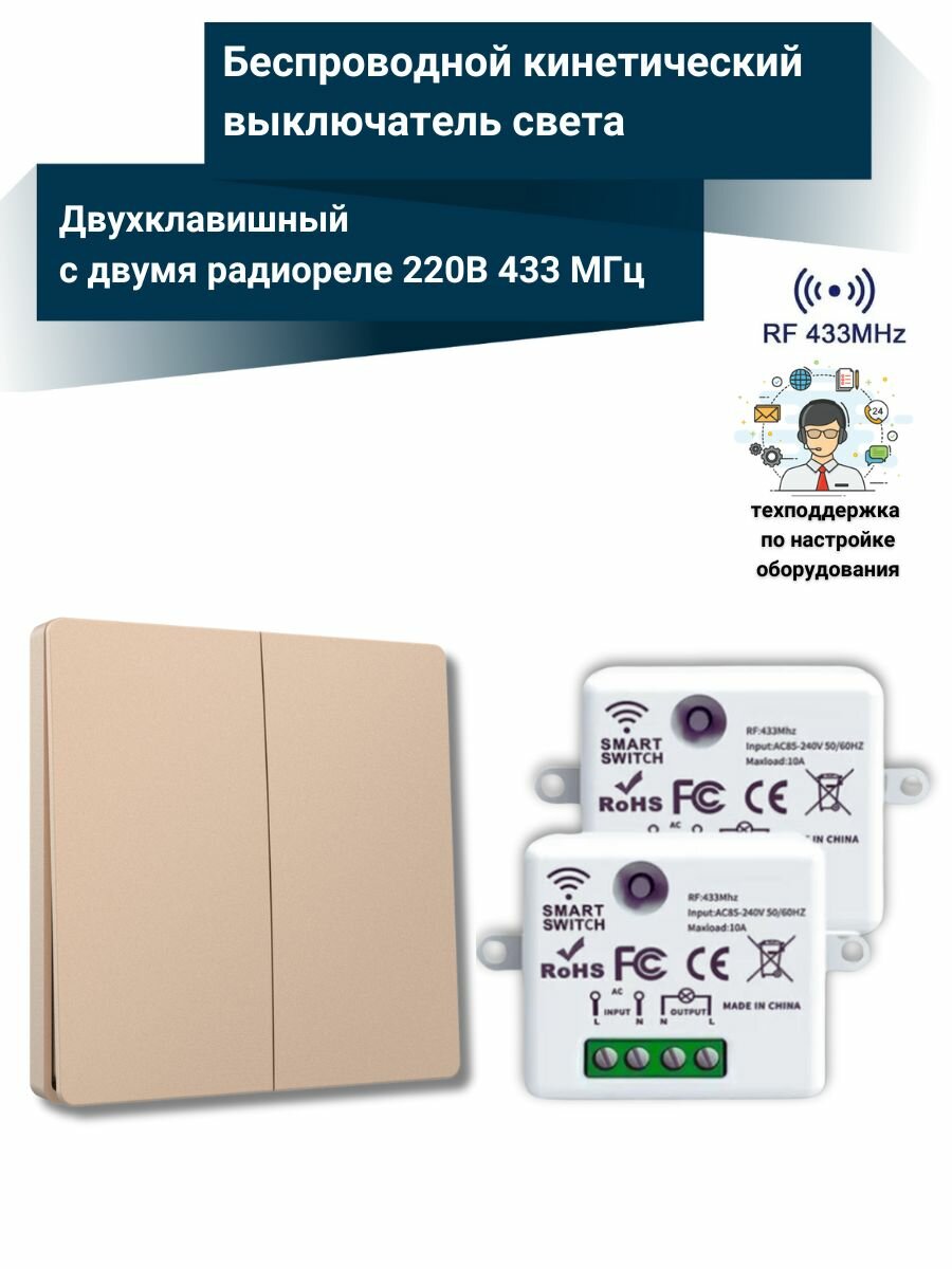 Беспроводной кинетический выключатель света NETGIM (2 клавиши + два реле 220В 10А 433МГц) Бронза: сравнение цен, характеристики, фото, актуальное наличие и цены.
