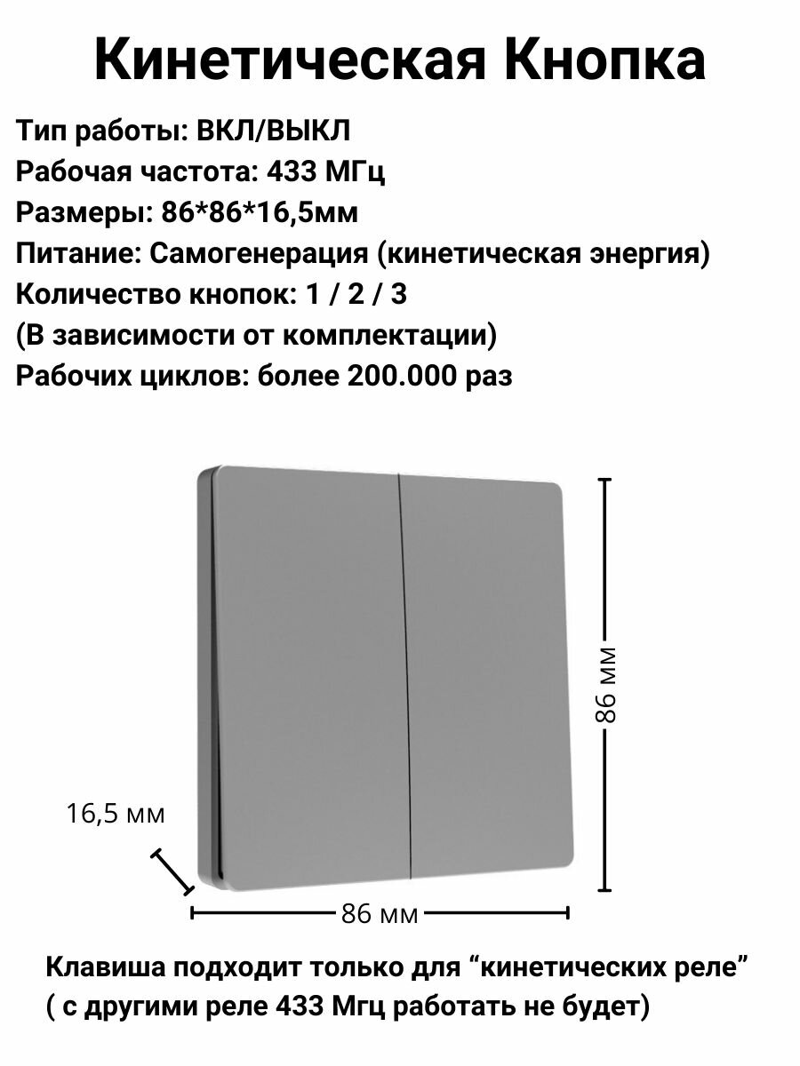 Беспроводной кинетический выключатель света NETGIM (2 клавиши + два реле 220В 10А 433МГц) Серый: сравнение цен, характеристики, фото, актуальное наличие и цены.