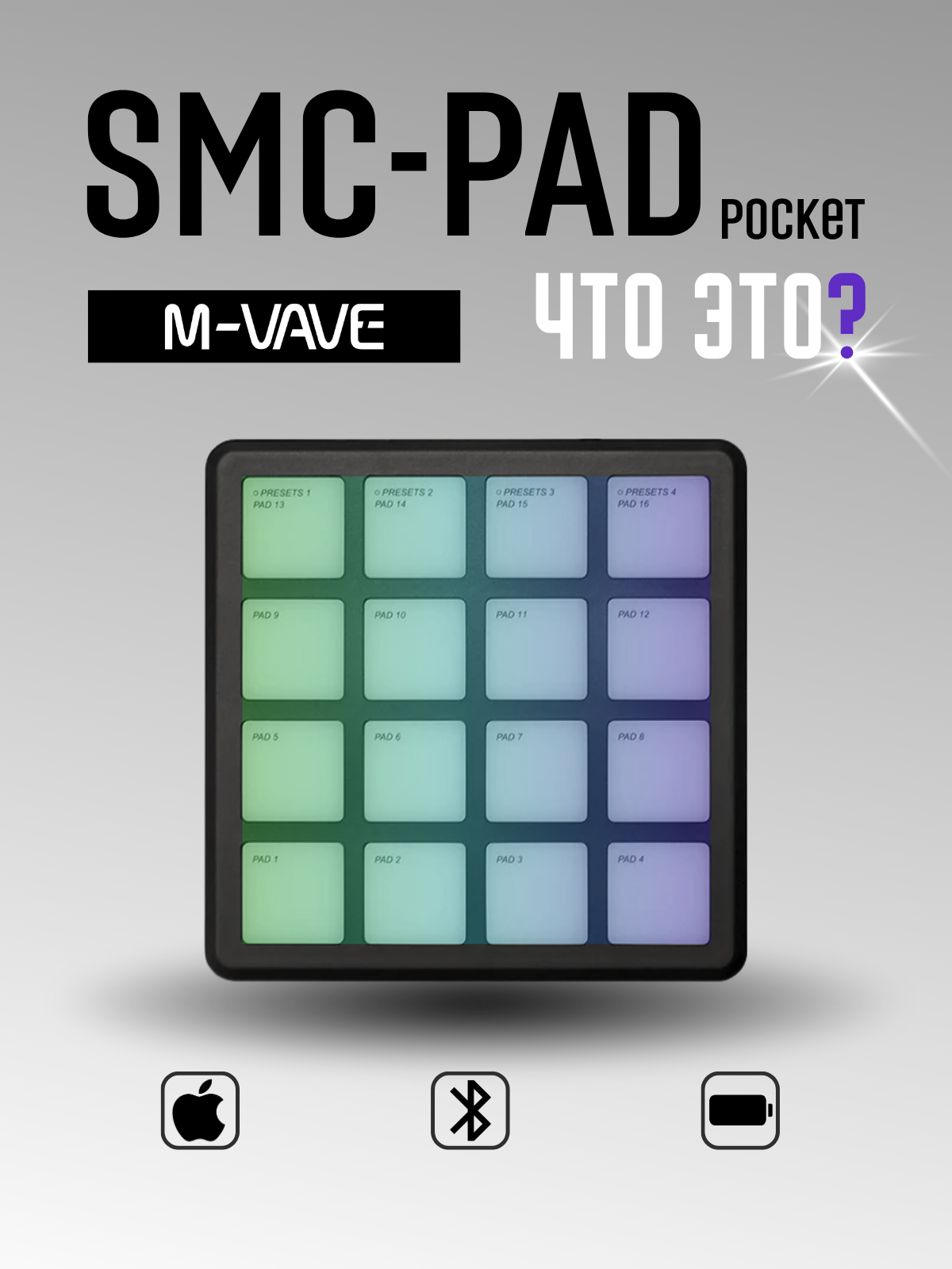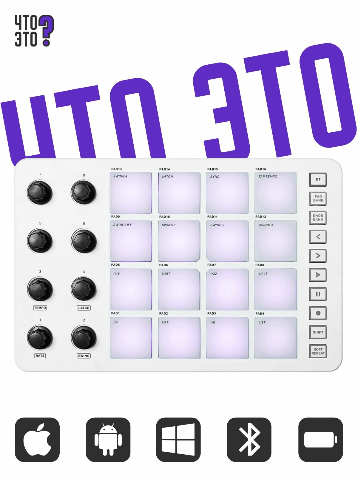 особенности:· Беспроводной MIDI-контроллер, низкая задержка, стабильная передача, так что создание музыки не ограничено, высвобождайте вдохновение;· Встроенный источник питания от перезаряжаемой батареи, нет необходимости заменять батарею, длительное время работы, также можно перейти в режим зарядки при подключении к использованию, в любое время и в любом месте, сразу готов к использованию, наслаждайтесь, выходите творить, как вам нравится;· Идеальная стыковка с основной цифровой аудиосистемой (DAW), плавное и удобное управление, повышенная совместимость;· Дизайн силиконовых кнопок с подсветкой, бесшумное нажатие, быстрый отклик делают ваше восприятие музыки более чистым;· Две группы из 8 поворотных датчиков на 360 градусов, точная регулировка и контроль, более точные детали;· Два набора из 16 пэдов с RGB подсветкой реагируют на силу нажатия, от которой меняется громкость и имеют обратную связь после прикосновения, делая ваш ритм более ярким и мощным;· Интерфейс вывода MIDI 3,5 мм, подключение внешнего устройства более удобное, позволяет вашему творчеству бесконечно расширяться;· Встроенная функция повтора нот, богатый уровень ритма, дающий вам неограниченные возможности для исполнения музыки;· Для беспроводного использования Windows требуется установка драйверов· В комплект поставки не входит программное обеспечение starter host преимущества:· Беспроводное соединение, избавляющее от оков традиционного проводного подключения, низкая задержка, стабильная передача данных;· Встроенный источник питания от перезаряжаемой батареи, длительное время работы; Дизайн интерфейса USB-C; · Вес: 520г