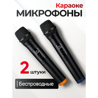 Купить Беспроводной микрофон, микрофон для караоке беспроводной, 2 микрофона, комплект, приемник, переходник AUX, черный с доставкой по всей России.