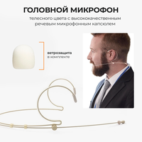 | Подробная комплектация | Поясной передатчик - 4 шт., головная гарнитура телесного цвета - 4 шт., ветрозащита для головной гарнитуры - 4 шт., приемник - 1 шт., адаптер питания для приёмника - 1 шт., кабель Jack 6,3 мм. - Jack 6,3 мм. 1,2 метра - 1 шт., антенна для приёмника - 4 шт., фирменная картонная коробка - 1 шт. |