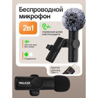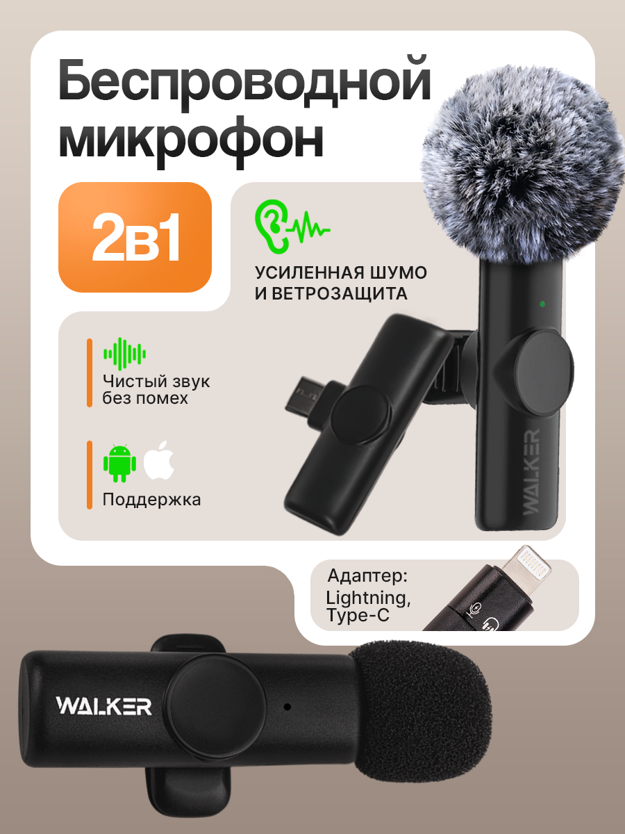 Купить Беспроводной микрофон WALKER WRM-53, петличный, Type-C/Lightning, черный с доставкой по всей России. Беспроводной микрофон WALKER WRM-53, петличный, Type-C/Lightning, черный: сравнение цен, характеристики, фото, актуальное наличие и цены.