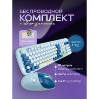 Купить Беспроводной набор MOFii, клавиатура и мышь, русская раскладка, 104 клавиши, 800/1200/1600 dpi, с котиками, синяя с доставкой по всей России.