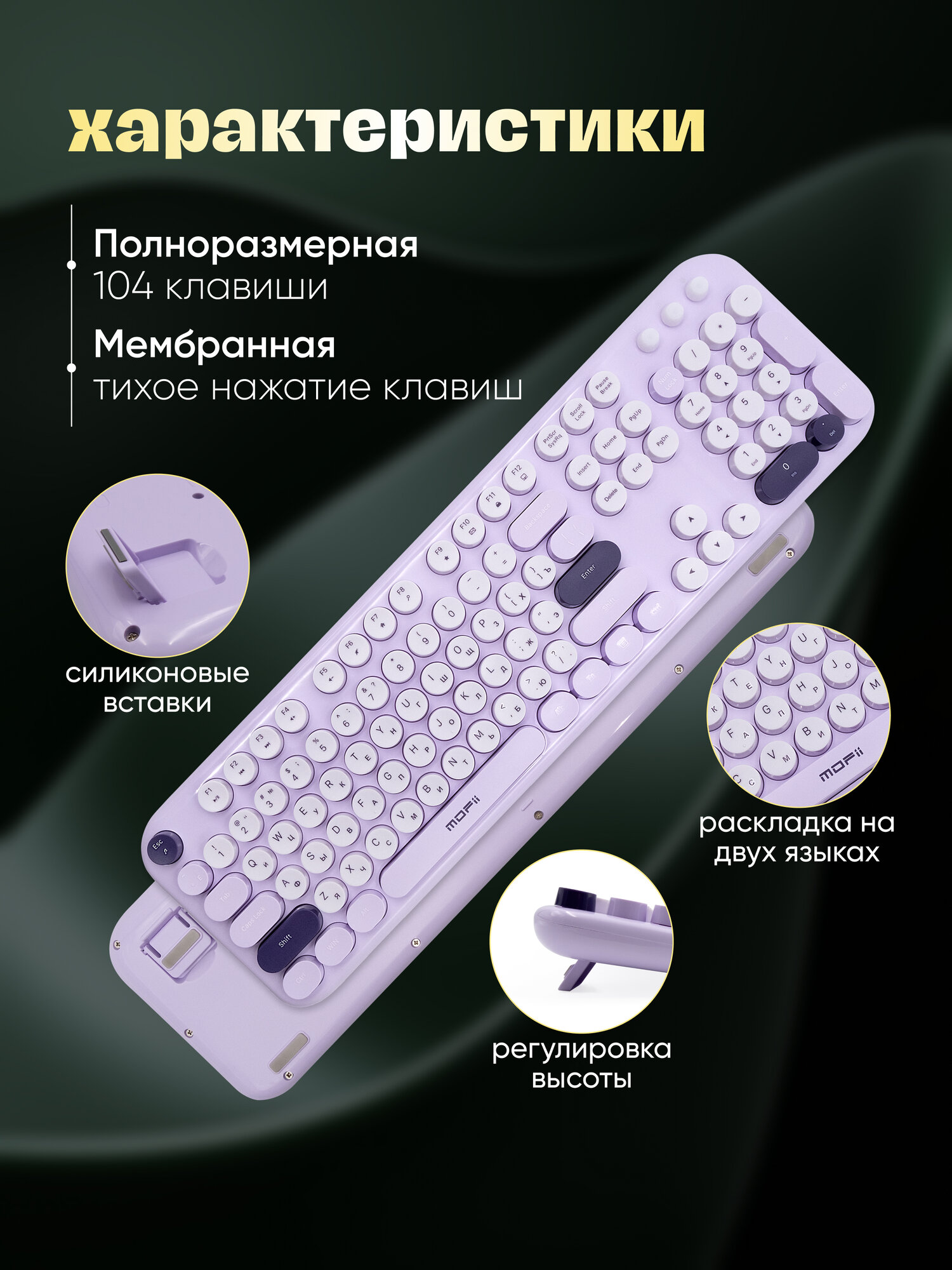 Беспроводной набор MOFii, клавиатура и мышь, русская раскладка, фиолетовый цвет: сравнение цен, характеристики, фото, актуальное наличие и цены.