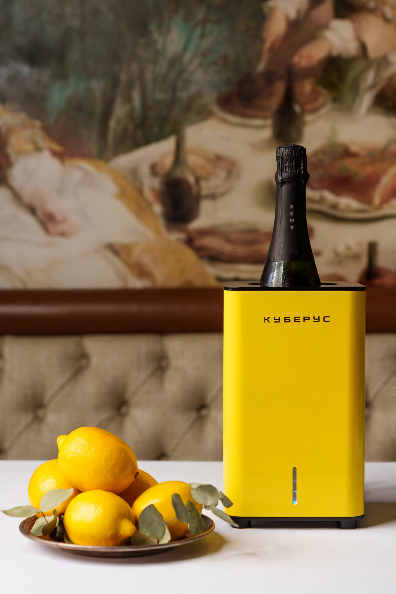Купить Беспроводной охладитель для бутылок КУБЕРУС, встроенный аккумулятор, цвет желтый с доставкой по всей России.